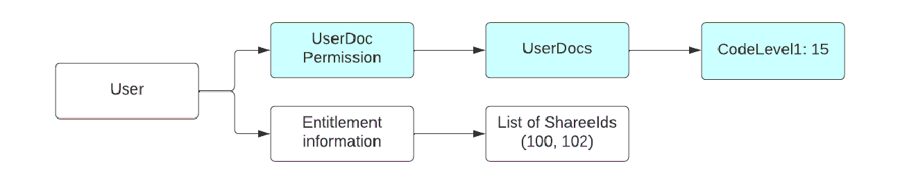 Entitlement check for UserDoc documents uses externalID and Document Permissions to define Entitlement Type for the document and user. Entitlement type defines the role of the user for the document. In case of UserDocs the user can be Owner or Reader. More information can be provided on the Entitlement Types.